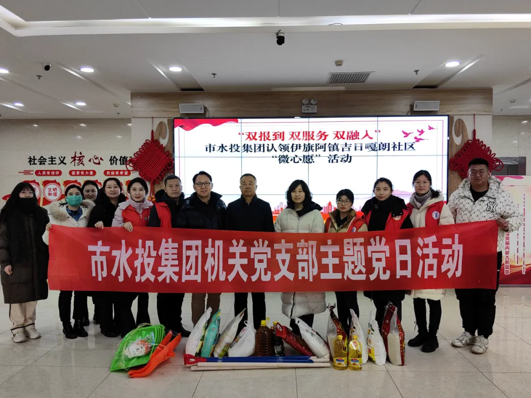 為深入貫徹落實黨的二十大精神,進一步推動黨員“雙報到雙服務(wù)雙融入”工作常態(tài)化開展,更好地發(fā)揮基層黨組織戰(zhàn)斗堡壘和黨員先鋒模范作用,12月18日,市水投集團機關(guān)黨支部積極認領(lǐng)“微心愿”,組織黨員干部到吉日嘎朗社區(qū)踐行服務(wù)承諾。